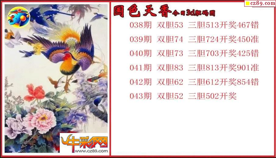> 26年043期3d 国色天香今日胆码图